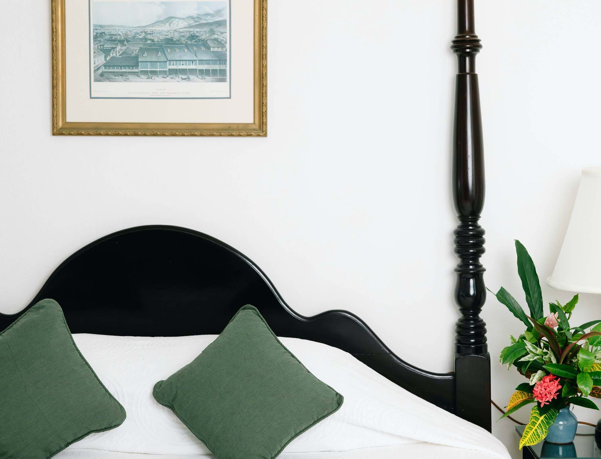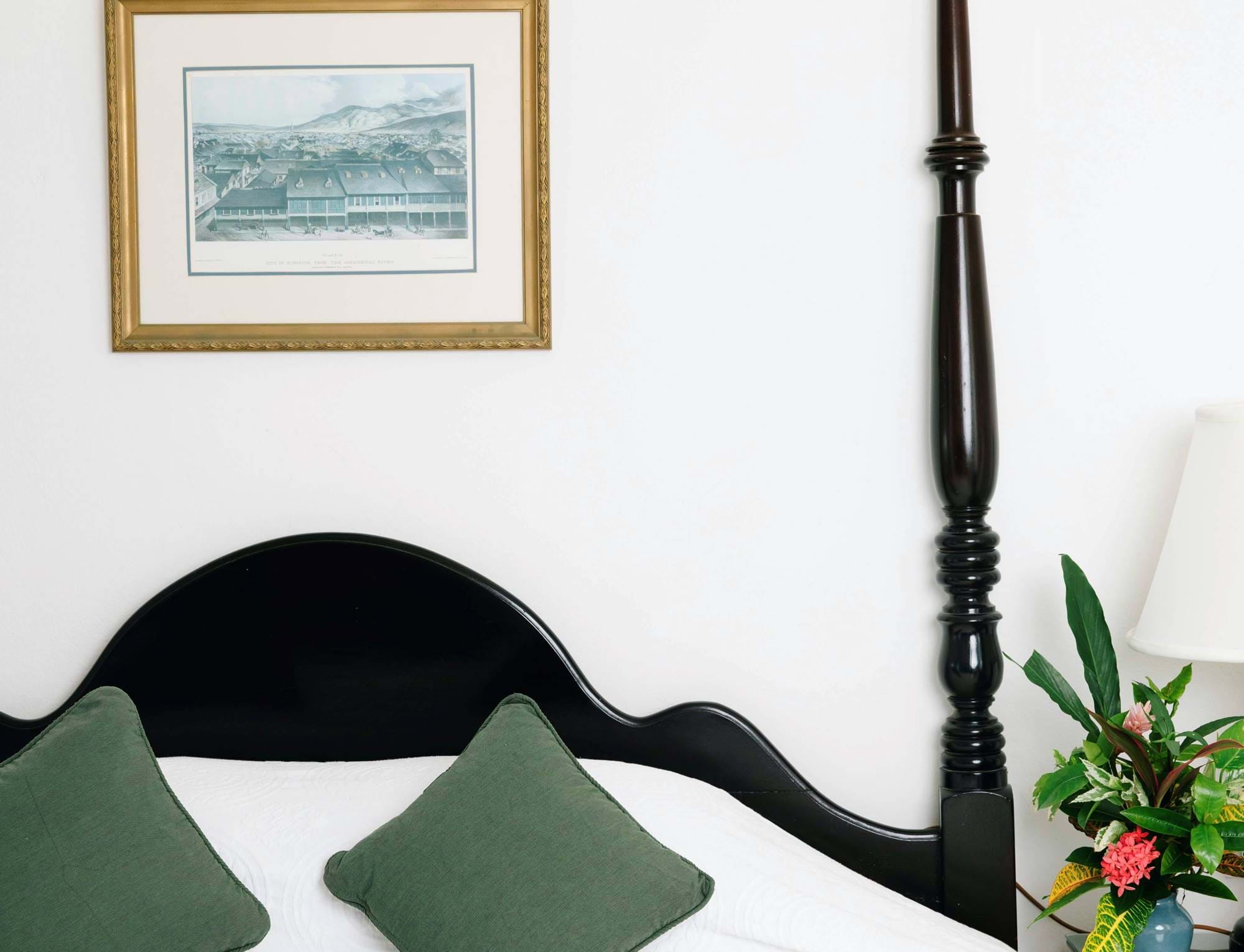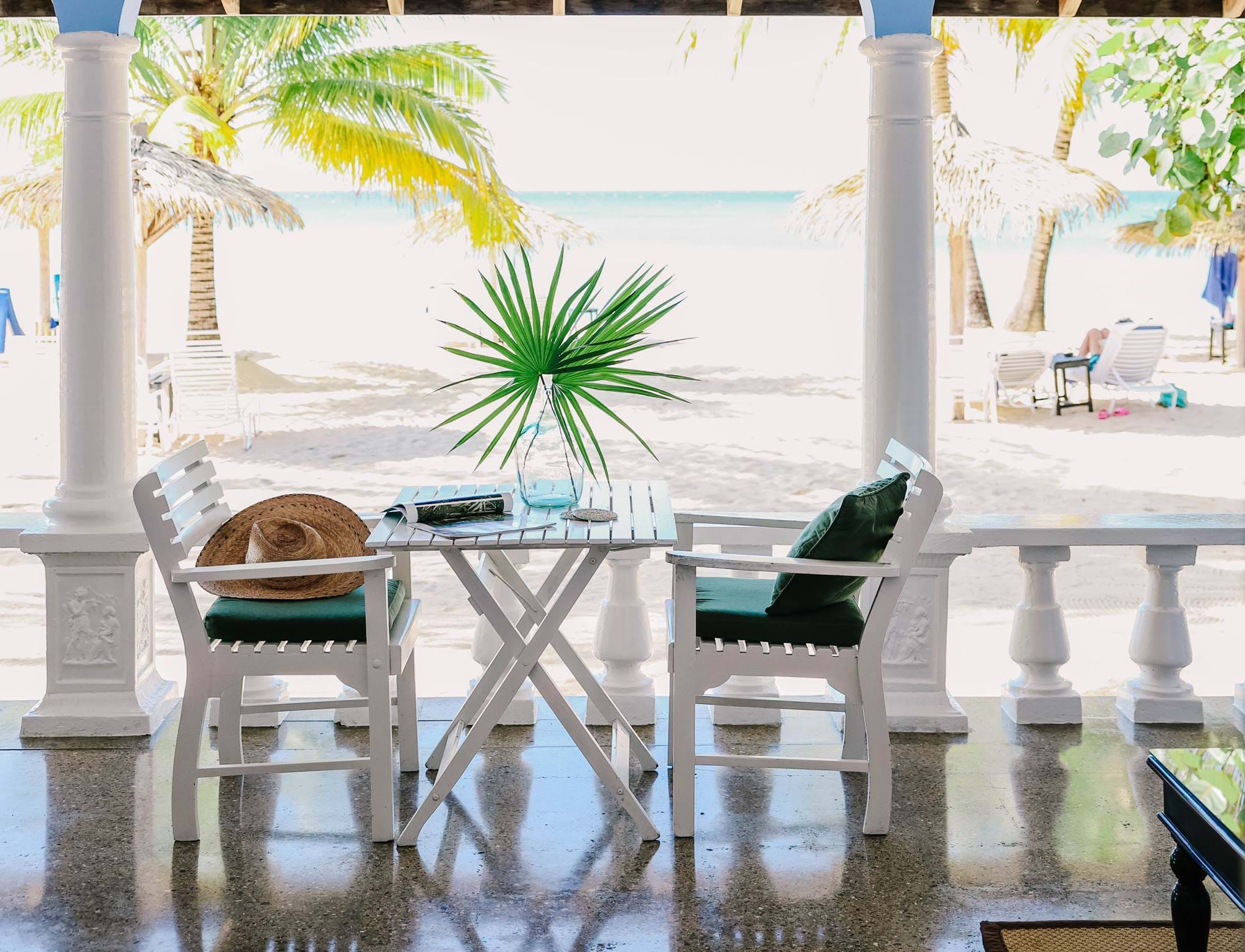 If you can bring yourself to leave the exquisitely furnished verandah to explore inside, you’ll find a serene, air-conditioned space filled with light and fresh flowers.